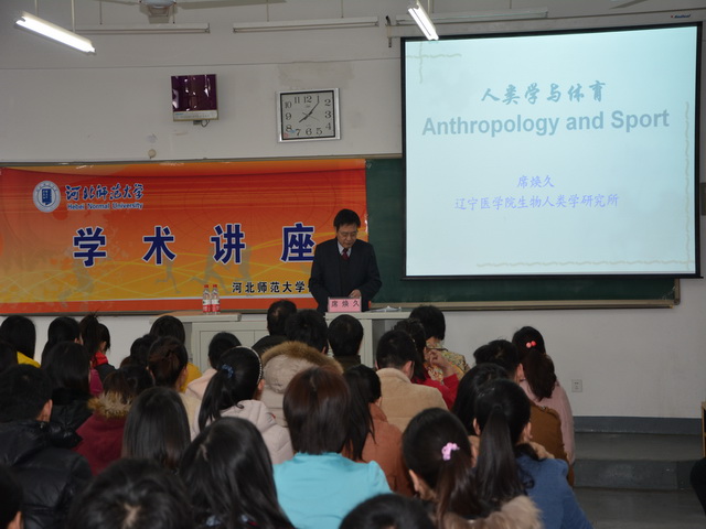 席焕久教授从人类学概念、研究的目的和意义、人的体质差异和体育人类学四部分进行讲学,对人类学起源和来源,人类学的系统与分类,体质人类学,人类的发展进化,体育上的应用,体育人类学的发展,人类学与体育科学,人类学对体育锻炼贡献及意义等都做出详细讲解。
